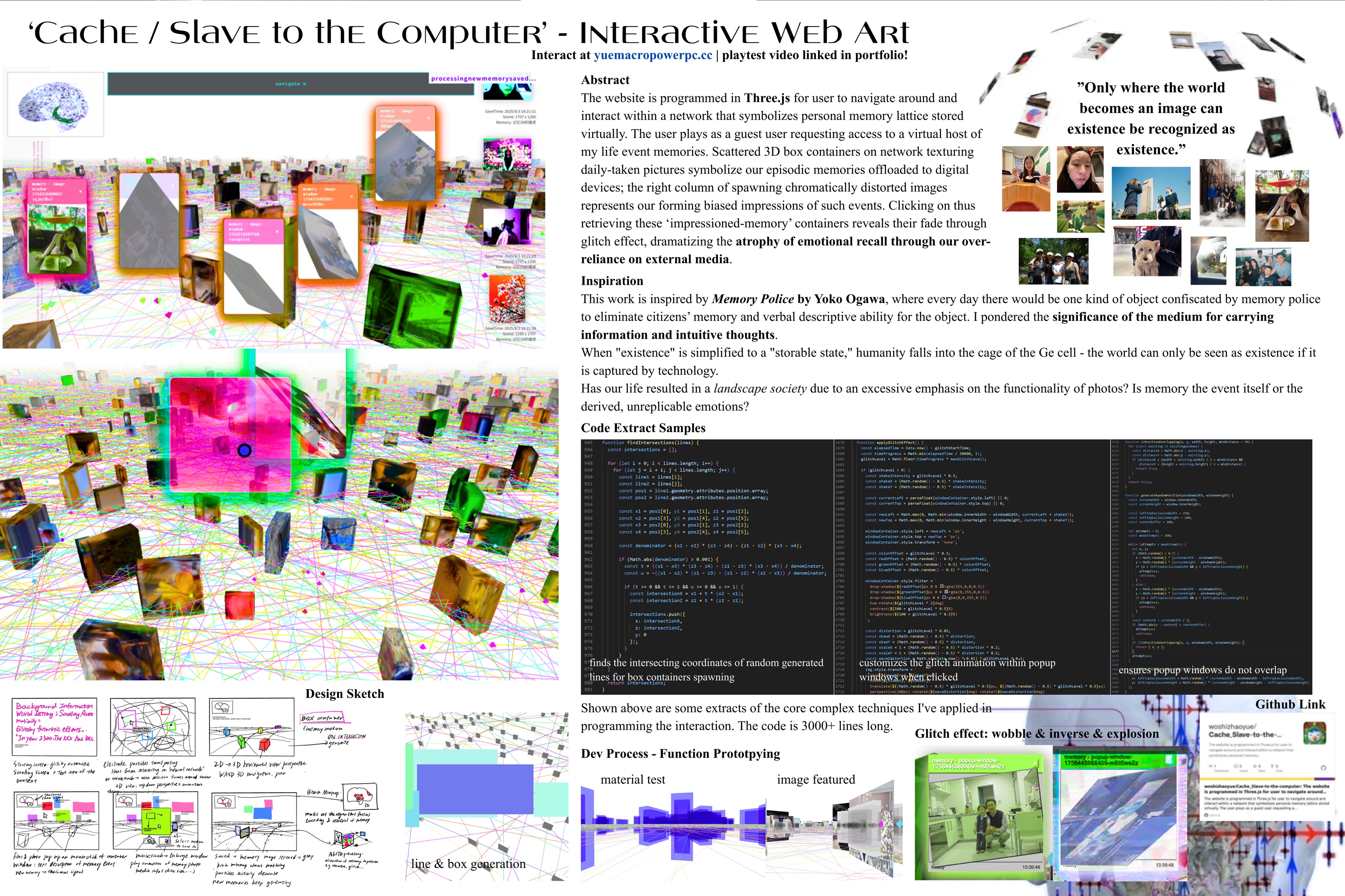 show detail >> Play Terror Tower >>Interactive JavaScript Three.js-based media art exploring memory and landscape society, examining how digital devices affect emotional recall through virtual memory networks